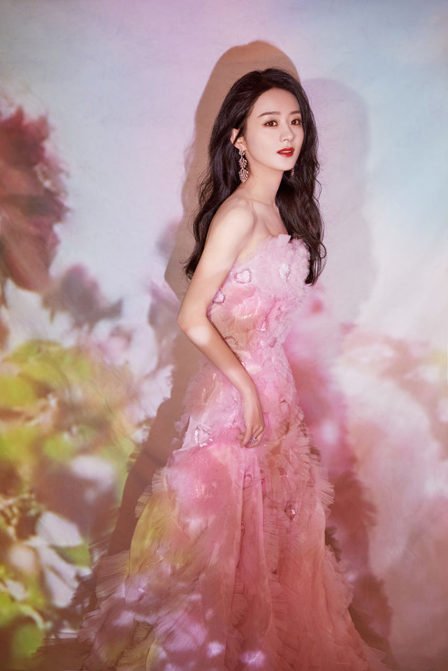 2021年1月19日讯,赵丽颖一组唯美写真曝光,她身穿粉色薄纱心形露肩礼裙,长发披肩甜美灵动,搭配玫瑰金色耳环精致得体,举手投足之间尽显温婉